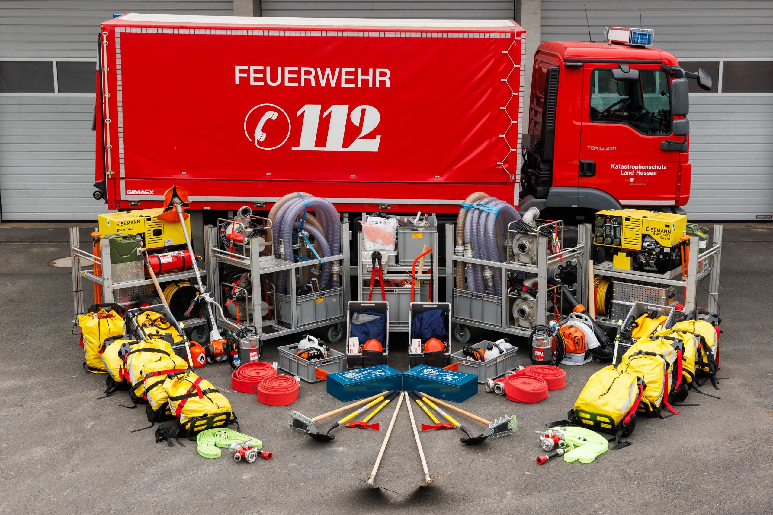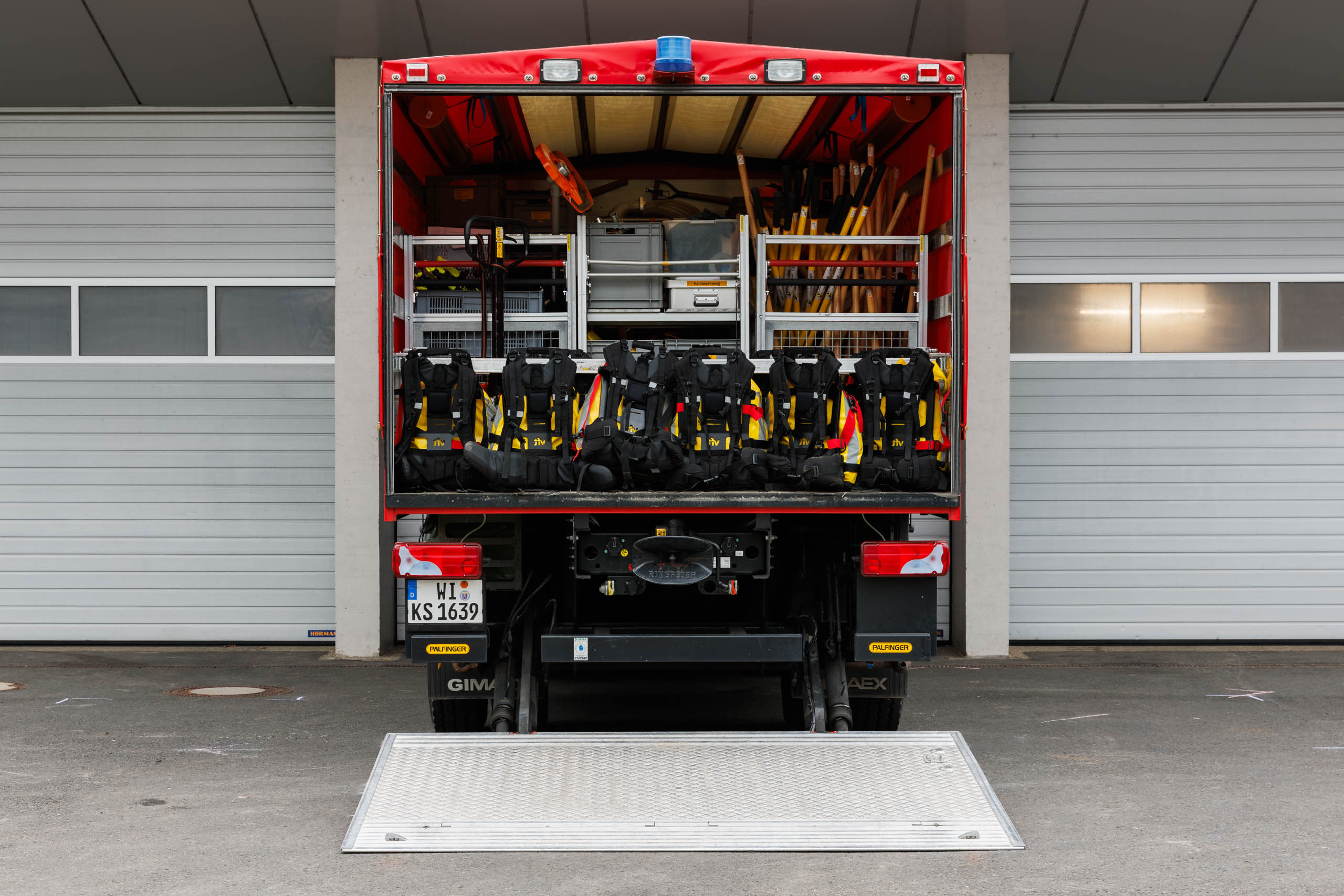 Für die technische Hilfeleistung ist neben Material zur Verkehrsabsicherung, einer Motorkettensäge oder Kleinwerkzeug (z.B. zur Türöffnung) auch ein Wassersauger und Zubehör verlastet.